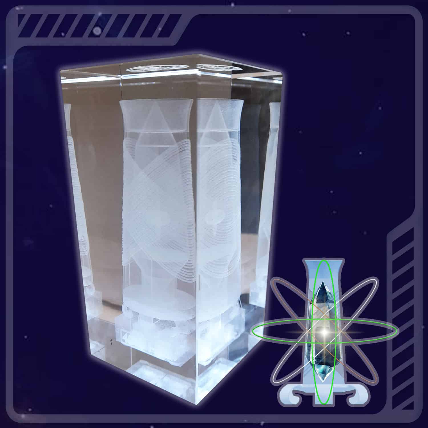 Le Phryll Hologen est la transposition holographique exacte dans un bloc de cristal, du générateur de Phryll tel qu’il a été transmis. Les opérateurs et les amateurs de ce type de technologies ont donc maintenant la possibilité, soit de construire ce générateur en utilisant le Cristal Phi Erra, disponible sur notre site, soit d’utiliser ce catalyseur holographique avec ou sans diapason 4096 Hz, qui permettra l’émission de Phryll dans votre demeure et dans les espaces extérieurs où il est placé.