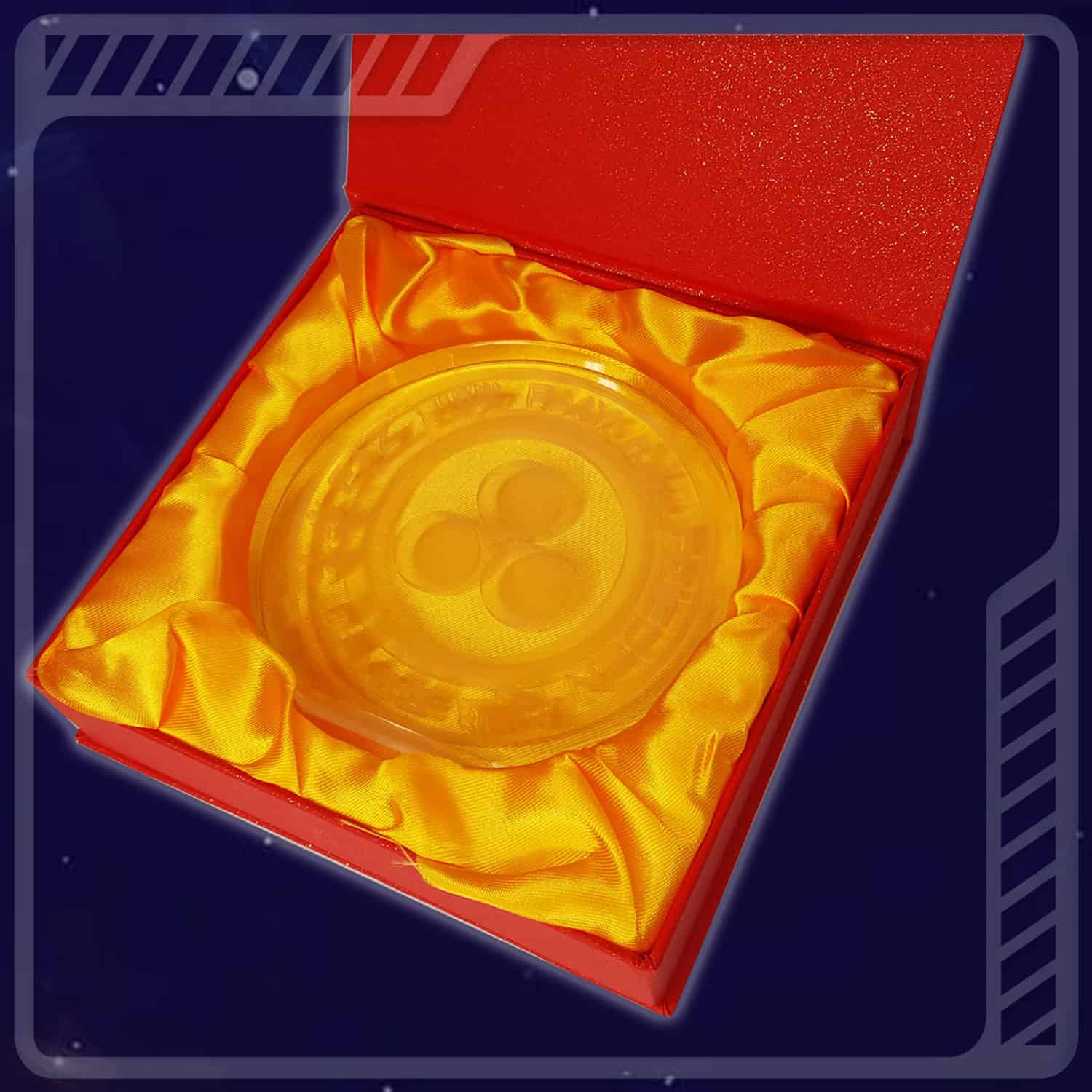 Ce catalyseur holographique est fourni dans une très belle boite revêtue de mousseline orange.