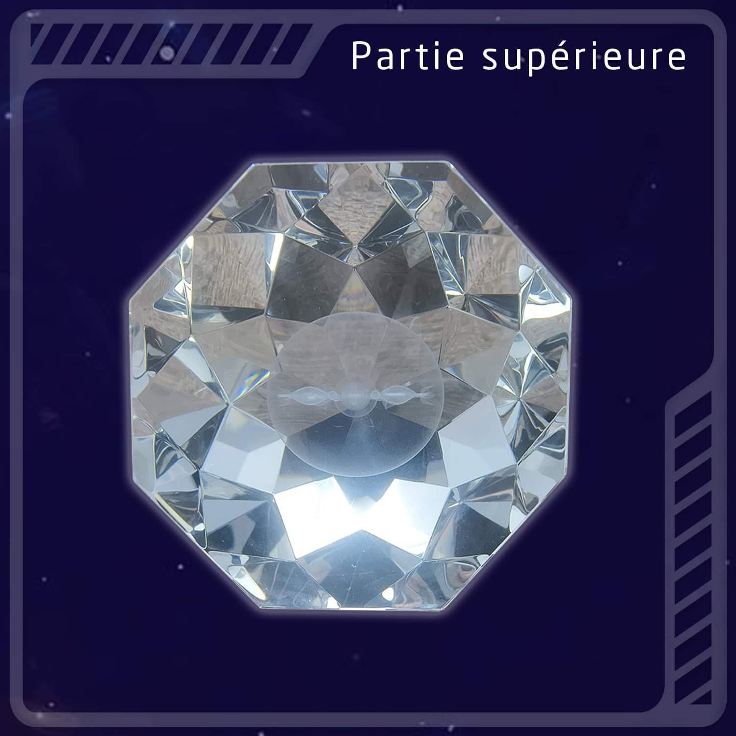 Artefact en cristal pur taillé en Zome 8 avec un hologramme de Lumière encodée du Code de Semence Divine Eckasha pour l’harmonisation vibratoire des lieux et des êtres vivants .