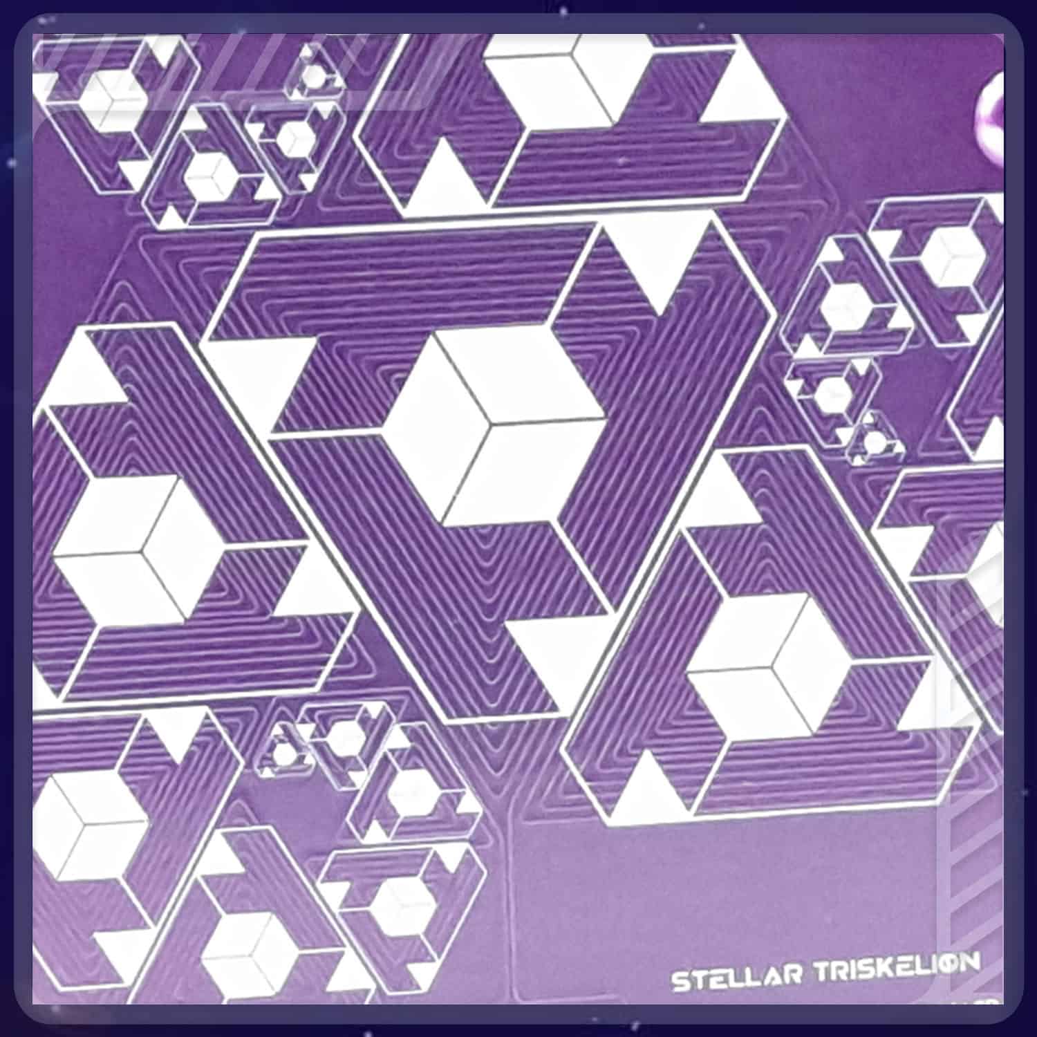 La plaque scalaire d’Aural’Ys est une innovation en matière de circuit imprimé (PCB) car ce conducteur flexible est réalisé dans un matériau transparent permettant à la fois la transmission lumineuse et la circulation d’un signal électrique de faible intensité. Sa surface est micro‑gravée selon une géométrie composée de dix circuits interconnectés de triangles proportionnés au nombre d’or, configuration choisie pour optimiser la distribution des lignes de courant et favoriser la formation d’un champ de torsion cohérent.