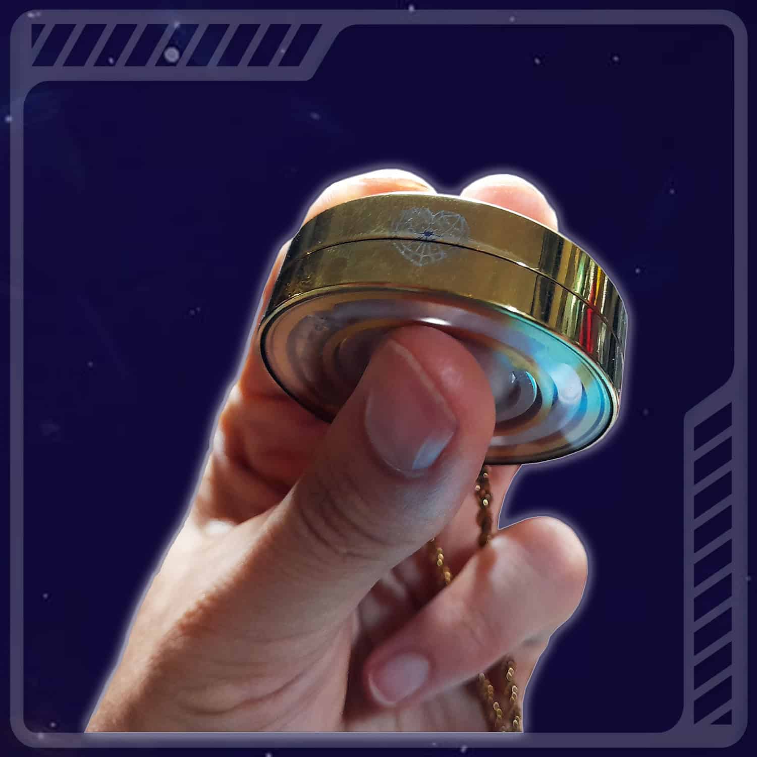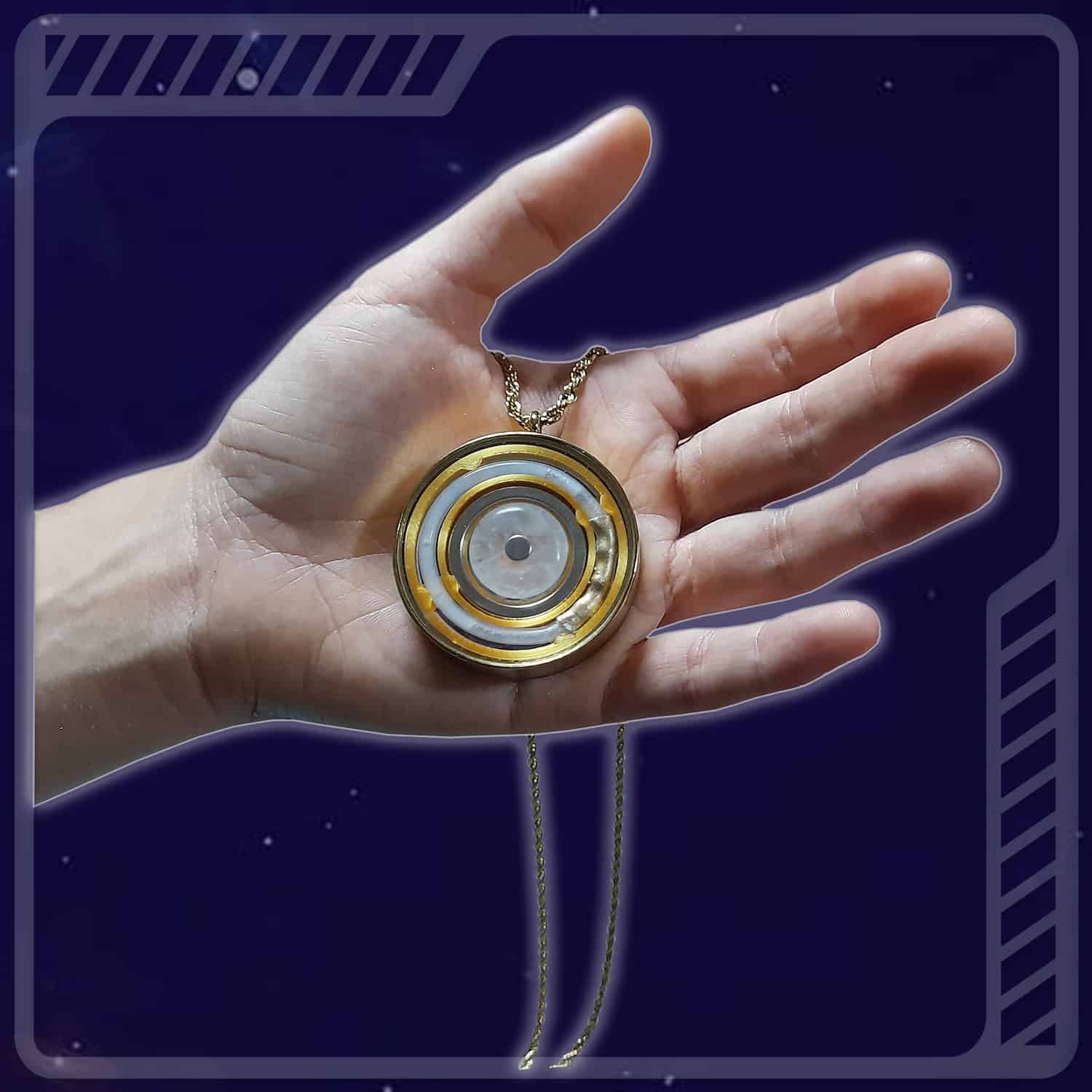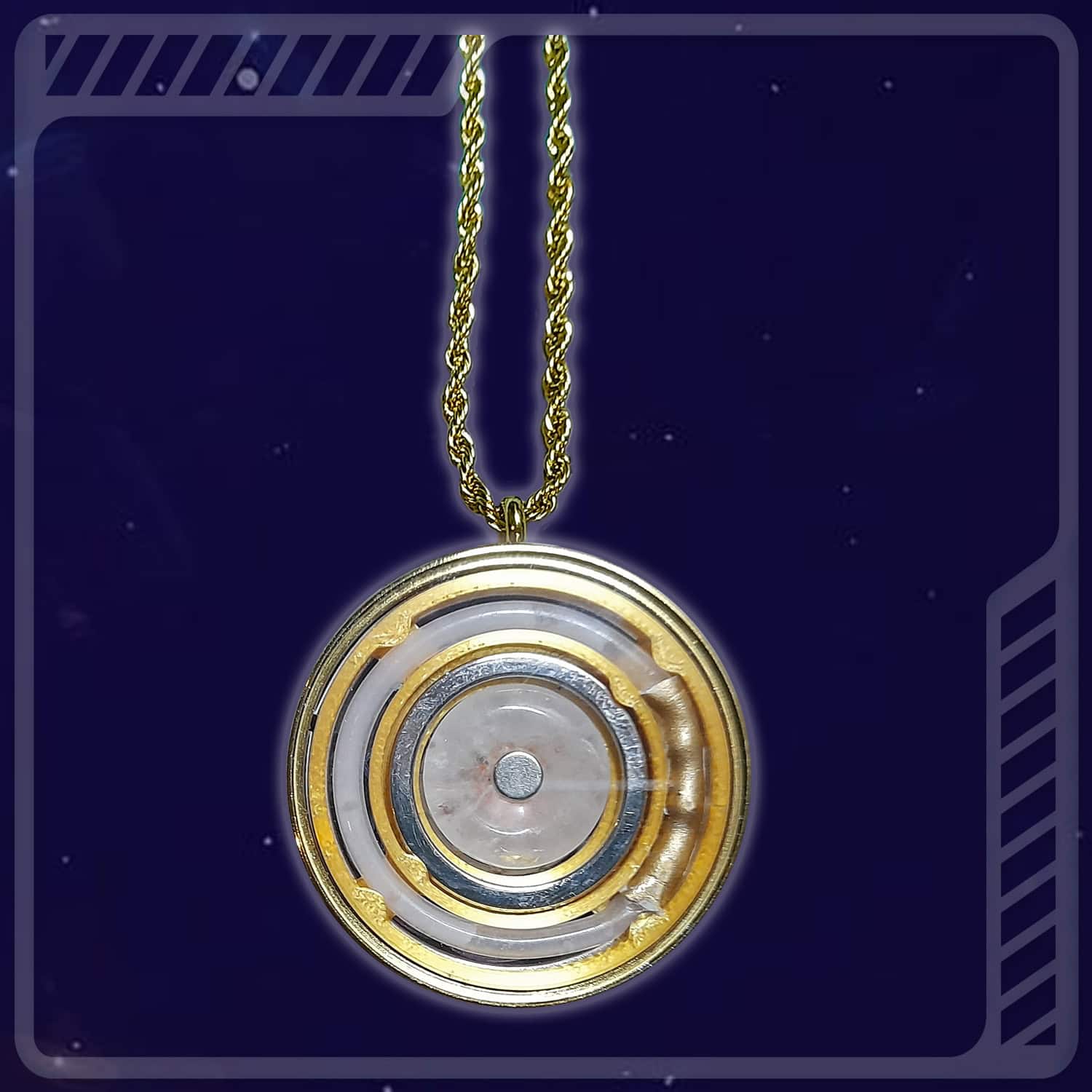 Un anneau de GaNS est soumis à pression magnétique par deux aimants compressés avec des polarités SUD-SUD, afin d’activer les nanoparticules qui composent le liquide plasmatique (Dioxyde de Carbone – CO2 – et Oxyde de Zinc – ZnO) qu’il contient. Cette diffusion magnéto-gravitationnelle se diffuse vers l’extérieur vers l’avant et l’arrière du pendentif.