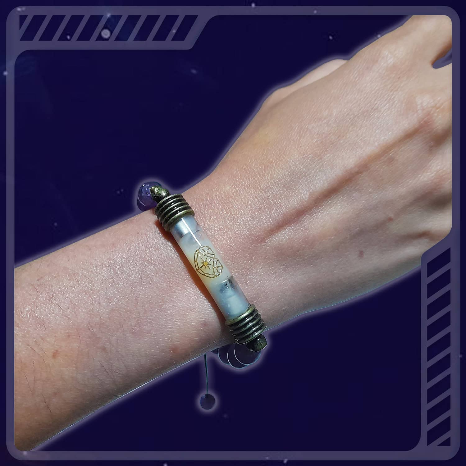 Bracelet unisexe de Plasmo-Magnéto-Lithothérapie avec un tube en verre contenant des aimants et du GaNS de CO2/ZnO (Dioxyde de Carbone 80% / Oxyde de Zinc 20%).
