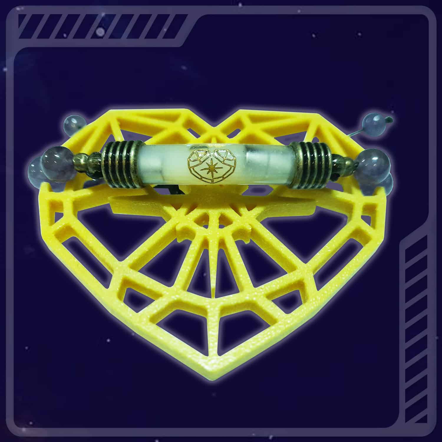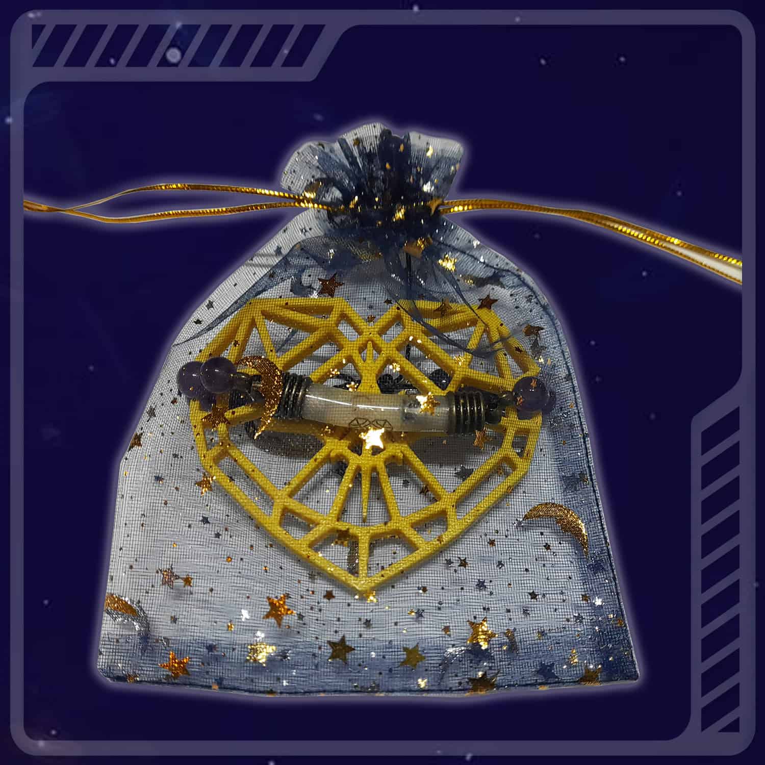 Livré dans un support en forme de Cœur Cosmique et une pochette décorative.