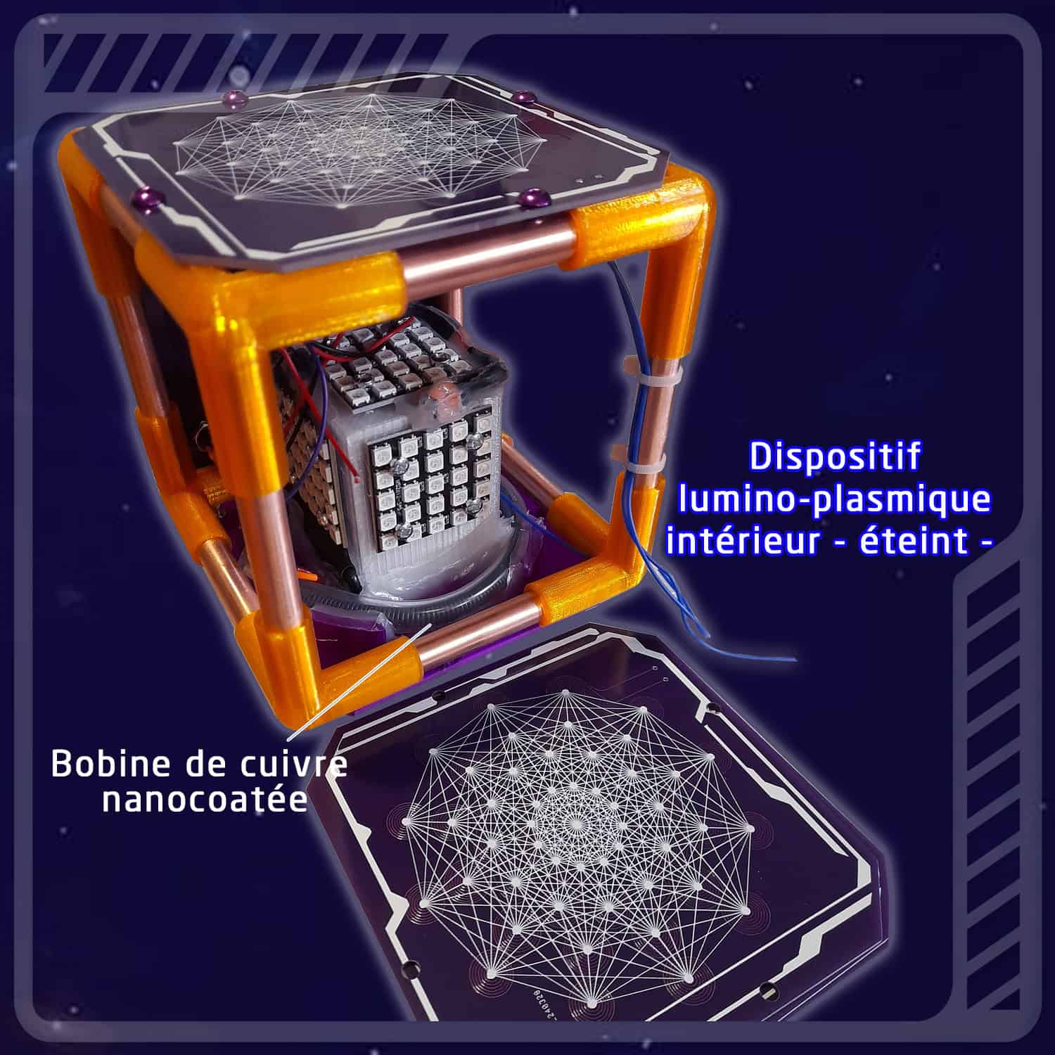 Elle comprend en effet deux cubes intriqués : le premier, externe, est composé d‘un cube avec 5 plaques scalaires interconnectées permettant