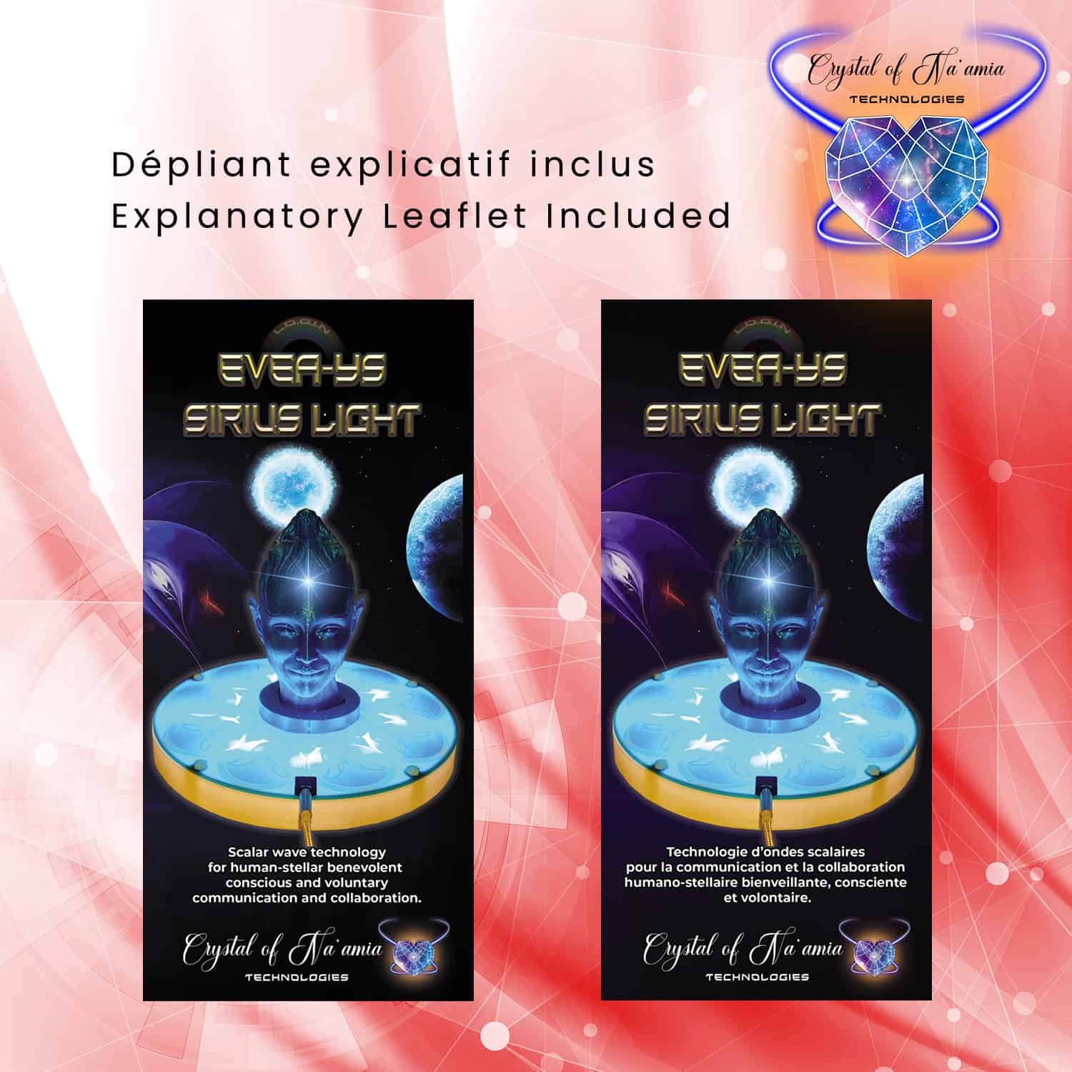 Le Vaisseau Optimisant de Conscience Amour-Lumière EVEA-YS SIRIUS LIGHT est une technologie d’ondes scalaires dédiée à la communication et la collaboration humano-stellaire bienveillante, consciente et volontaire. Constituée de 9 bobines scalaires interconnectées finement gravées sur une plaque conductrice, celles-ci permettent à l’énergie de circuler en boucle sous la forme d’un vortex permettant de corriger les ondes électromagnétiques ambiantes et de former un champ vibratoire harmonieux pour le vivant.