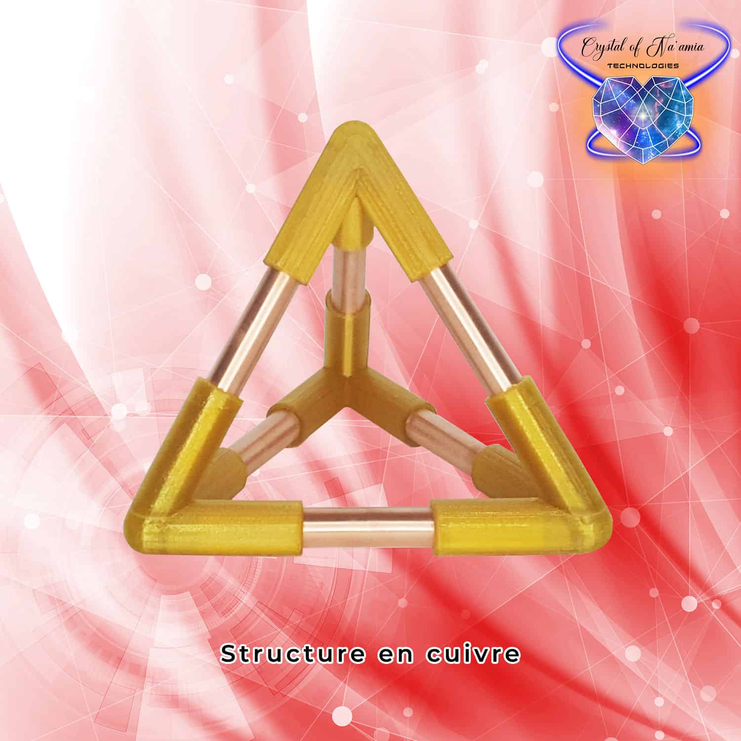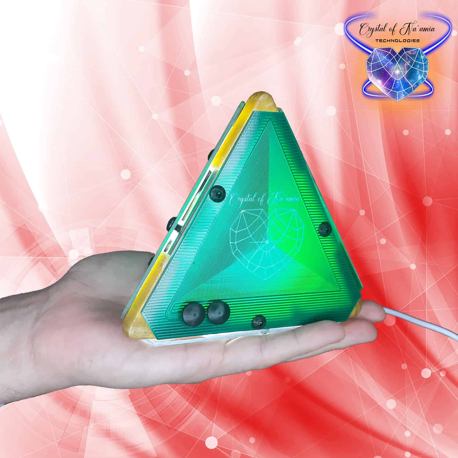 Les 3 faces du Vaisseau Optimisant de Conscience Amour-lumière Ignis Tetrahedron sont recouvertes de plaques gravées de fins circuits formant 3 bobines quantiques permettant l’émission d’un puissant champ d’ondes scalaires. La technologie utilise des LEDs très basse consommation diffusant une douce lumière verte permettant de se relier au chakra du cœur.